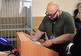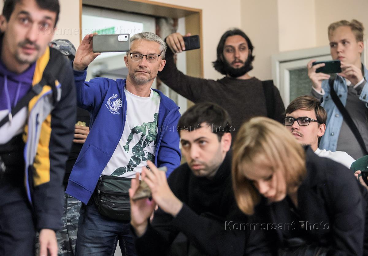 Судебное заседание в отношении первого заместителя исполнительного директора "Ельцин Центра" Людмилы Телень, обвиняемой по статье о дискредитации Вооруженных сил России, в Верх-Исетском районном суде. Журналист телеканала "Крик-ТВ" Алексей Кузнецов на суде.