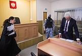 Судебное заседание в отношении первого заместителя исполнительного директора "Ельцин Центра" Людмилы Телень, обвиняемой по статье о дискредитации Вооруженных сил России, в Верх-Исетском районном суде. Адвокат Михаил Бирюков (справа) во время заседания суда.
