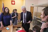 Судебное заседание в отношении первого заместителя исполнительного директора "Ельцин Центра" Людмилы Телень, обвиняемой по статье о дискредитации Вооруженных сил России, в Верх-Исетском районном суде. Адвокат Михаил Бирюков (в центре) во время заседания суда.