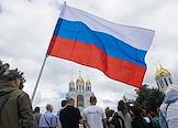 Празднование Дня Государственного флага России на площади Победы в Калининграде. Жители города во время праздничных мероприятий.