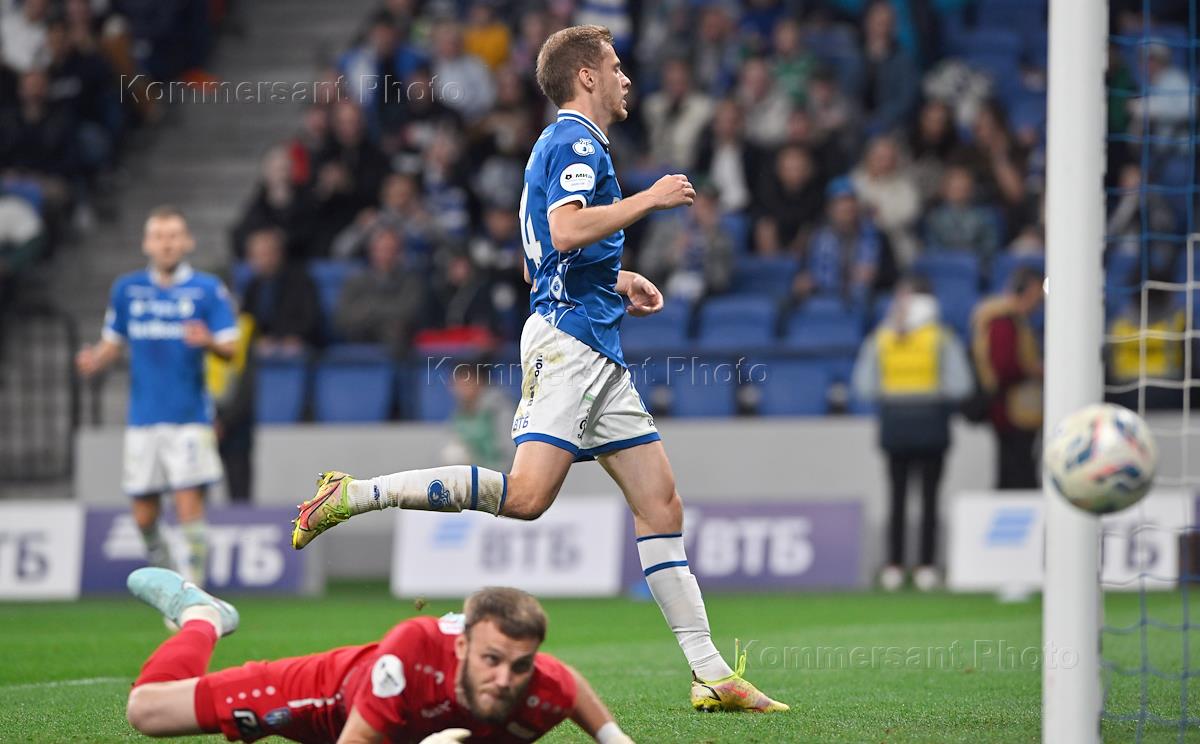 Мир Российская Премьер-Лига (РПЛ) 2025/2026. 6-й тур. Матч между командами "Динамо" (Москва) - "Пари Нижний Новгород" (Нижний Новгород) на стадионе "ВТБ Арена". Игрок команды "Динамо" Дмитрий Скопинцев (слева) во время матча.