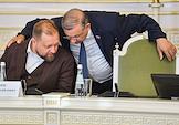 X заседание руководителей киноорганизаций в рамках VI Международного кинофестиваля России и стран ближнего зарубежья Lendoc Film Festival (LEFF). Руководитель пресс-службы Союза кинематографистов России Якунин (слева) и депутат Законодательного собрания Санкт-Петербурга Юрий Авдеев во время заседания.