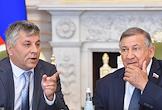 X заседание руководителей киноорганизаций в рамках VI Международного кинофестиваля России и стран ближнего зарубежья Lendoc Film Festival (LEFF). Генеральный директор АО ТПО "Санкт-Петербургская студия документальных фильмов" (Лендок) Алексей Тельнов (слева) и председатель Архивного комитета Санкт-Петербурга Петр Тищенко во время заседания.