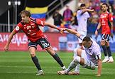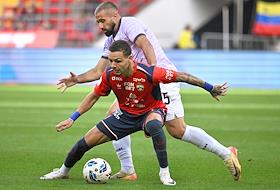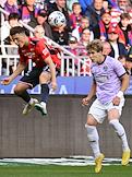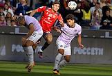 Мир Российская Премьер-Лига (РПЛ) 2025/2026. 6-й тур. Матч между командами ЦСКА (Москва) - "Акрон" (Тольятти) на стадионе "ВЭБ Арена". Игрок команды ЦСКА Матеус Алвес (слева) и игрок команды "Акрон" Ифет Джаковац (справа) во время матча.