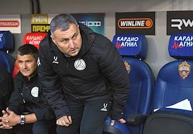 Мир Российская Премьер-Лига (РПЛ) 2025/2026. 6-й тур. Матч между командами ЦСКА (Москва) - "Акрон" (Тольятти) на стадионе "ВЭБ Арена". Главный тренер команды "Акрон" Заур Тедеев (справа) во время матча.
