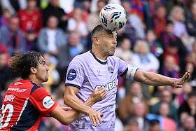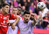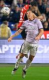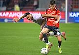 Мир Российская Премьер-Лига (РПЛ) 2025/2026. 6-й тур. Матч между командами ЦСКА (Москва) - "Акрон" (Тольятти) на стадионе "ВЭБ Арена". Игрок команды "Акрон" Артем Дзюба (слева) во время матча.
