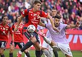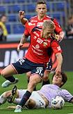 Мир Российская Премьер-Лига (РПЛ) 2025/2026. 6-й тур. Матч между командами ЦСКА (Москва) - "Акрон" (Тольятти) на стадионе "ВЭБ Арена". Игрок команды "Акрон" Ифет Джаковац (слева) и игрок команды ЦСКА Иван Обляков (справа) во время матча.