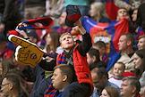 Мир Российская Премьер-Лига (РПЛ) 2025/2026. 6-й тур. Матч между командами ЦСКА (Москва) - "Акрон" (Тольятти) на стадионе "ВЭБ Арена". Болельщики команды ЦСКА на трибуне стадиона.