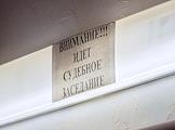 Жанровая фотография. Центральный районный суд. Табличка с надписью "Внимание!!! Идет судебное заседание!".