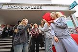 День открытых дверей в общеобразовательной школе ГБОУ "Марьинская школа № 1566 памяти Героев Сталинградской битвы". Жанровая фотография. Ученики перед входом в здание школы.