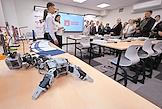 День открытых дверей в общеобразовательной школе ГБОУ "Марьинская школа № 1566 памяти Героев Сталинградской битвы". Жанровая фотография. Кабинет робототехники. Модель робота.