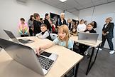 День открытых дверей в общеобразовательной школе ГБОУ "Марьинская школа № 1566 памяти Героев Сталинградской битвы". Жанровая фотография. Ученики в компьютерном классе.