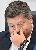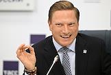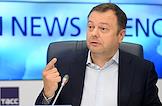 Пресс-конференция, посвященная развитию автомобильного туризма в стране, и презентация карты и логотипа туристических автомаршрутов в пресс-центре ТАСС. Вице-президент по внешним связям и взаимодействию с акционерами АО "АВТОВАЗ" Сергей Громак во время пресс-конференции.