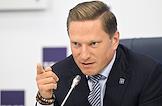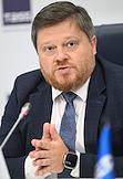 Пресс-конференция, посвященная развитию автомобильного туризма в стране, и презентация карты и логотипа туристических автомаршрутов в пресс-центре ТАСС. Заместитель министра экономического развития России Дмитрий Вахруков во время пресс-конференции.