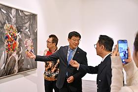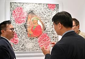 Пресс-показ выставки китайского художника Чжоу Ивэня "За осенью весна" в Московском музее современного искусства. Ректор Строгановской академии Сергей Курасов (справа) во время пресс-показа.