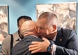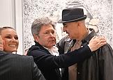 Пресс-показ выставки китайского художника Чжоу Ивэня "За осенью весна" в Московском музее современного искусства. Архитектор Сергей Оссовский (в центре) и художник Серги Шагулашвили (справа) на пресс-показе.