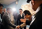 Пресс-показ выставки китайского художника Чжоу Ивэня "За осенью весна" в Московском музее современного искусства. Архитектор Сергей Оссовский (в центре) на пресс-показе.