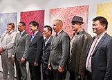 Пресс-показ выставки китайского художника Чжоу Ивэня "За осенью весна" в Московском музее современного искусства. Исполнительный директор Московского музея современного искусства (ММСИ), президент Российской академии художеств Василий Церетели (третий слева) и китайский художник Чжоу Ивэнь (в центре) во время пресс-показа.