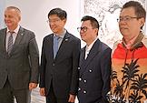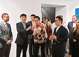 Пресс-показ выставки китайского художника Чжоу Ивэня "За осенью весна" в Московском музее современного искусства. Слева направо: ректор Строгановской академии Сергей Курасов, советник-посланник по культуре посольства Китайской Народной Республики в России Фэн Литао, китайский художник Чжоу Ивэнь и куратор выставки Чжоу Сэсэ во время пресс-показа.