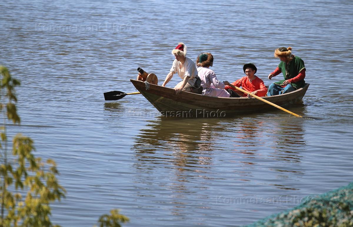 IV Фестиваль Волжского традиционного образа жизни и ремесел "Народная лодка" на набережной реки Свияга. Участники на фестивале.