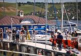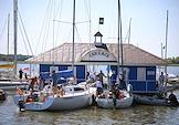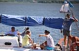 IV Фестиваль Волжского традиционного образа жизни и ремесел "Народная лодка" на набережной реки Свияга. Участники на фестивале. Отдыхающие на яхте.
