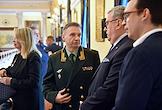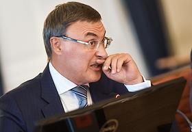 Совещание, посвящённое обсуждению промежуточных итогов и перспектив реализации пилотного проекта совершенствования системы высшего образования и подготовки кадров для российской экономики, в Санкт-Петербургском горном университете императрицы Екатерины II. Ректор Московского авиационного института (МАИ) Михаил Погосян во время совещания.