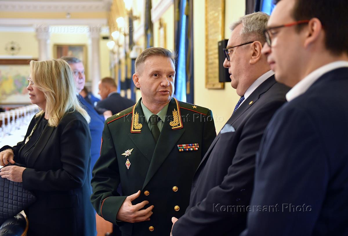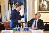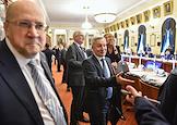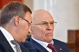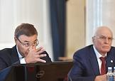Совещание, посвящённое обсуждению промежуточных итогов и перспектив реализации пилотного проекта совершенствования системы высшего образования и подготовки кадров для российской экономики, в Санкт-Петербургском горном университете императрицы Екатерины II. Ректор Санкт-Петербургского государственного горного института, академик Российской академии естественных наук (РАЕН) Владимир Литвиненко (слева) во время совещания.