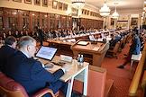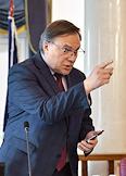 Совещание, посвящённое обсуждению промежуточных итогов и перспектив реализации пилотного проекта совершенствования системы высшего образования и подготовки кадров для российской экономики, в Санкт-Петербургском горном университете императрицы Екатерины II. Ректор Санкт-Петербургского государственного горного института, академик Российской академии естественных наук (РАЕН) Владимир Литвиненко во время совещания.
