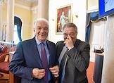 Совещание, посвящённое обсуждению промежуточных итогов и перспектив реализации пилотного проекта совершенствования системы высшего образования и подготовки кадров для российской экономики, в Санкт-Петербургском горном университете императрицы Екатерины II. Министр науки и высшего образования России Валерий Фальков (слева) и ректор Санкт-Петербургского государственного горного института, академик Российской академии естественных наук (РАЕН) Владимир Литвиненко (справа) во время совещания.