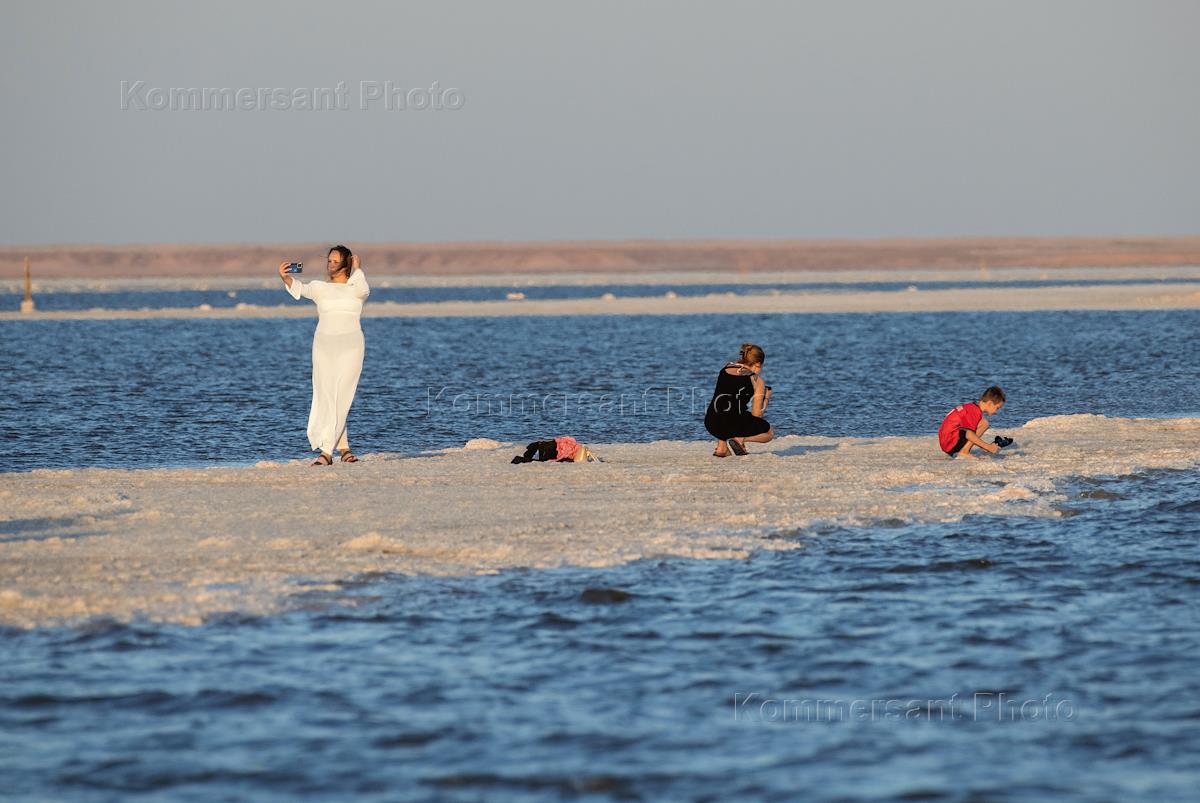 Жанровая фотография. Озеро Баскунчак. Отдыхающие на соленом озере Баскунчак.