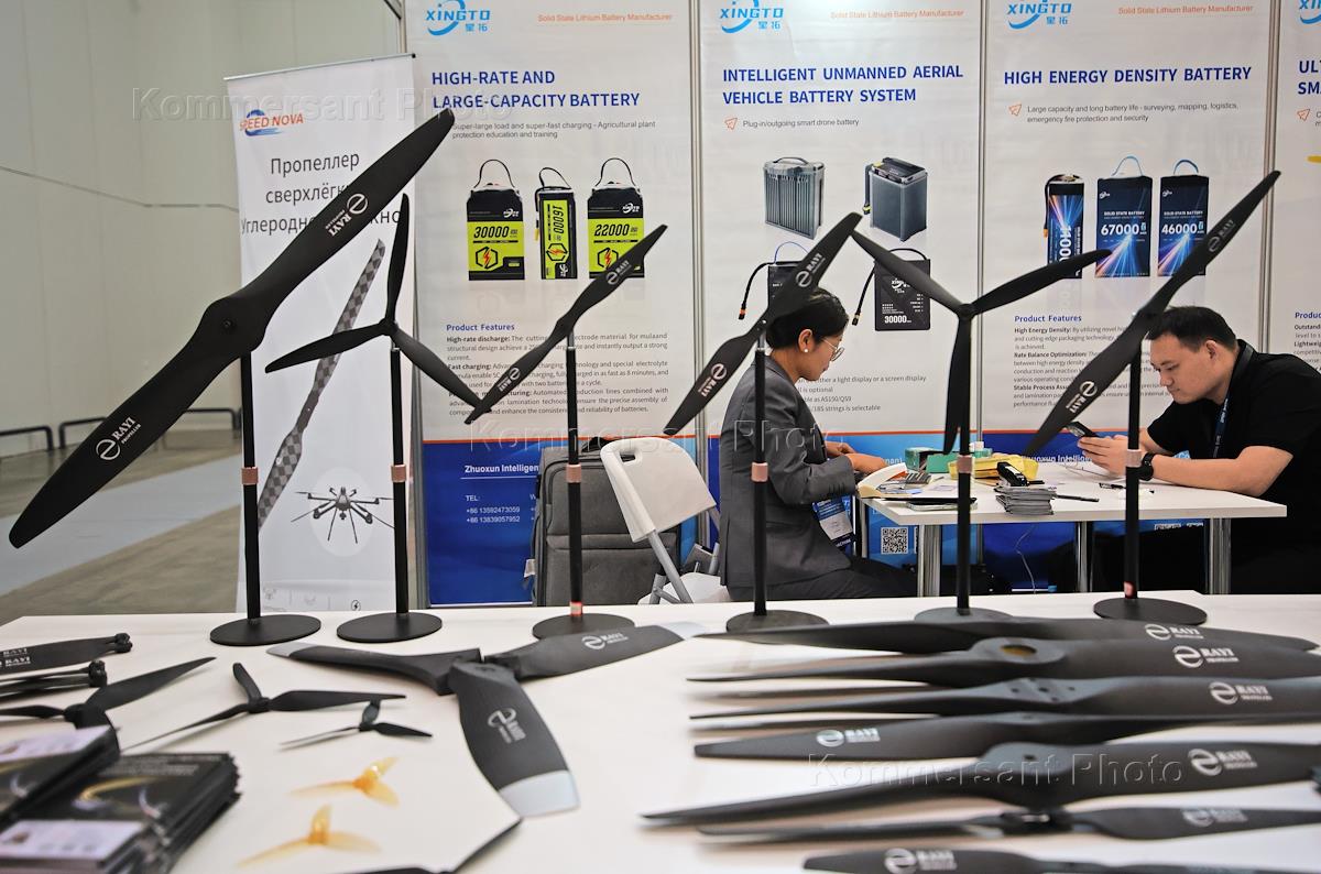 Международная выставка беспилотных авиационных систем "Дрон Экспо" в МВЦ "Казань Экспо". Жанровая фотография. Беспилотный летательный аппарат "Т-20" группы компаний ZALA.