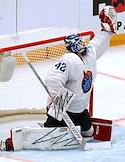 Кубок мэра Москвы по хоккею. Матч между командами "Спартак" (Москва) и "Шанхай Дрэгонс" (Шанхай) на стадионе "Мегаспорт". Вратарь команды "Шанхай Дрэгонс" Патрик Рибар во время матча.