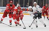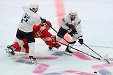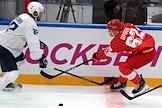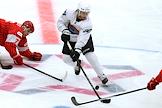 Кубок мэра Москвы по хоккею. Матч между командами "Спартак" (Москва) и "Шанхай Дрэгонс" (Санкт-Петербург) на стадионе "Мегаспорт". Игрок команды "Спартак" Иван Морозов (справа) во время матча.