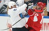 Кубок мэра Москвы по хоккею. Матч между командами "Спартак" (Москва) и "Шанхай Дрэгонс" (Санкт-Петербург) на стадионе "Мегаспорт". Игрок команды "Спартак" Михаил Мальцев (справа) во время матча.