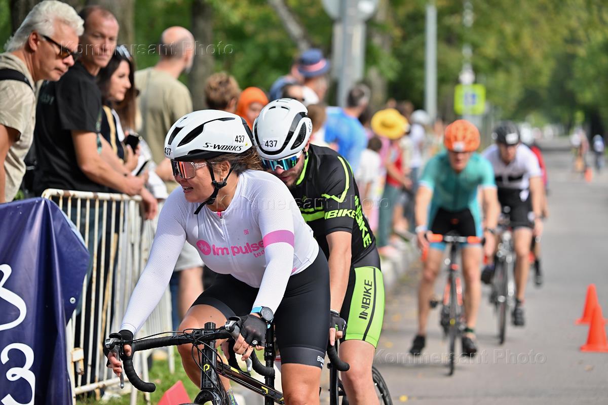 Чемпионат Московской области по триатлону. Первенство среди любителей. XII Дубненский триатлон "Николов Перевоз". Участник чемпионата Дмитрий Сергеев (слева) во время соревнований.