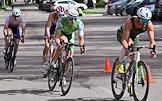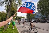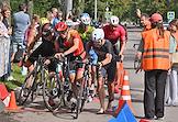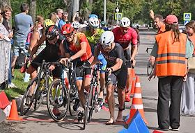 Чемпионат Московской области по триатлону. Первенство среди любителей. XII Дубненский триатлон "Николов Перевоз". Участники чемпионата во время велогонки.