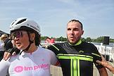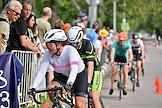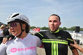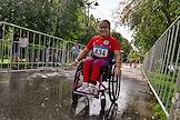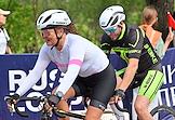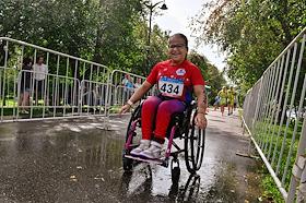 Чемпионат Московской области по триатлону. Первенство среди любителей. XII Дубненский триатлон "Николов Перевоз". Участница чемпионата во время гонки в инвалидном кресле.
