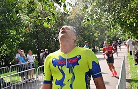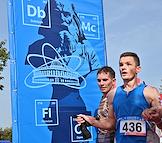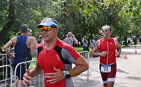 Чемпионат Московской области по триатлону. Первенство среди любителей. XII Дубненский триатлон "Николов Перевоз". Участники чемпионата на финише забега.