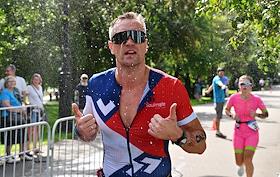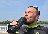 Чемпионат Московской области по триатлону. Первенство среди любителей. XII Дубненский триатлон "Николов Перевоз". Победитель чемпионата Дмитрий Сергеев после церемонии награждения.