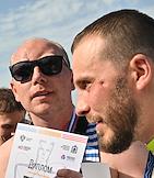 Чемпионат Московской области по триатлону. Первенство среди любителей. XII Дубненский триатлон "Николов Перевоз". Победители чемпионата Дмитрий Сергеев (справа) и Максим Андреев (слева) после церемонии награждения.