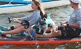 Сап-фестиваль в "РОСТОВ-ПАПА-САП" на Гребном канале "Дон". Участница фестиваля с собакой перед началом заплыва.