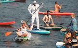 Сап-фестиваль в "РОСТОВ-ПАПА-САП" на Гребном канале "Дон". Участники фестиваля в карнавальных костюмах.