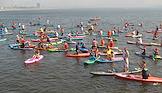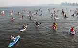 Сап-фестиваль в "РОСТОВ-ПАПА-САП" на Гребном канале "Дон". Участники фестиваля во время заплыва.