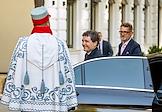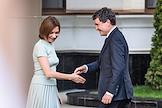 Президент Республики Молдова Майя Санду (справа) и президент Румынии Никушор Дан (слева) перед началом третьего выпуска Большого национального диктанта, посвященного дню румынского языка.