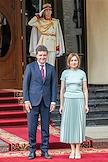 Президент Республики Молдова Майя Санду (вторая справа) и президент Румынии Никушор Дан (в центре) перед началом третьего выпуска Большого национального диктанта, посвященного дню румынского языка.