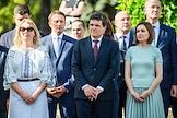 Президент Республики Молдова Майя Санду (пятая слева) и президент Румынии Никушор Дан (третий слева) перед началом третьего выпуска Большого национального диктанта, посвященного дню румынского языка.