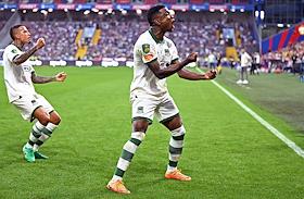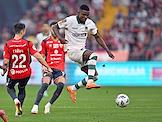 Мир Российская Премьер-Лига (РПЛ) 2025/2026. 7-й тур. Матч между командами ЦСКА (Москва) - "Краснодар" (Краснодар) на стадионе "ВЭБ Арена". Игрок команды "Краснодар" Джон Кордоба (справа) во время матча.