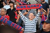 Мир Российская Премьер-Лига (РПЛ) 2025/2026. 7-й тур. Матч между командами ЦСКА (Москва) - "Краснодар" (Краснодар) на стадионе "ВЭБ Арена". Болельщики команды ЦСКА на зрительской трибуне во время матча.