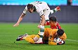 Мир Российская Премьер-Лига (РПЛ) 2025/2026. 7-й тур. Матч между командами ЦСКА (Москва) - "Краснодар" (Краснодар) на стадионе "ВЭБ Арена". Игрок команды ЦСКА Жоао Виктор (слева) и игрок команды "Краснодар" Джон Кордоба (в центре) во время матча.