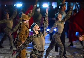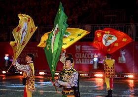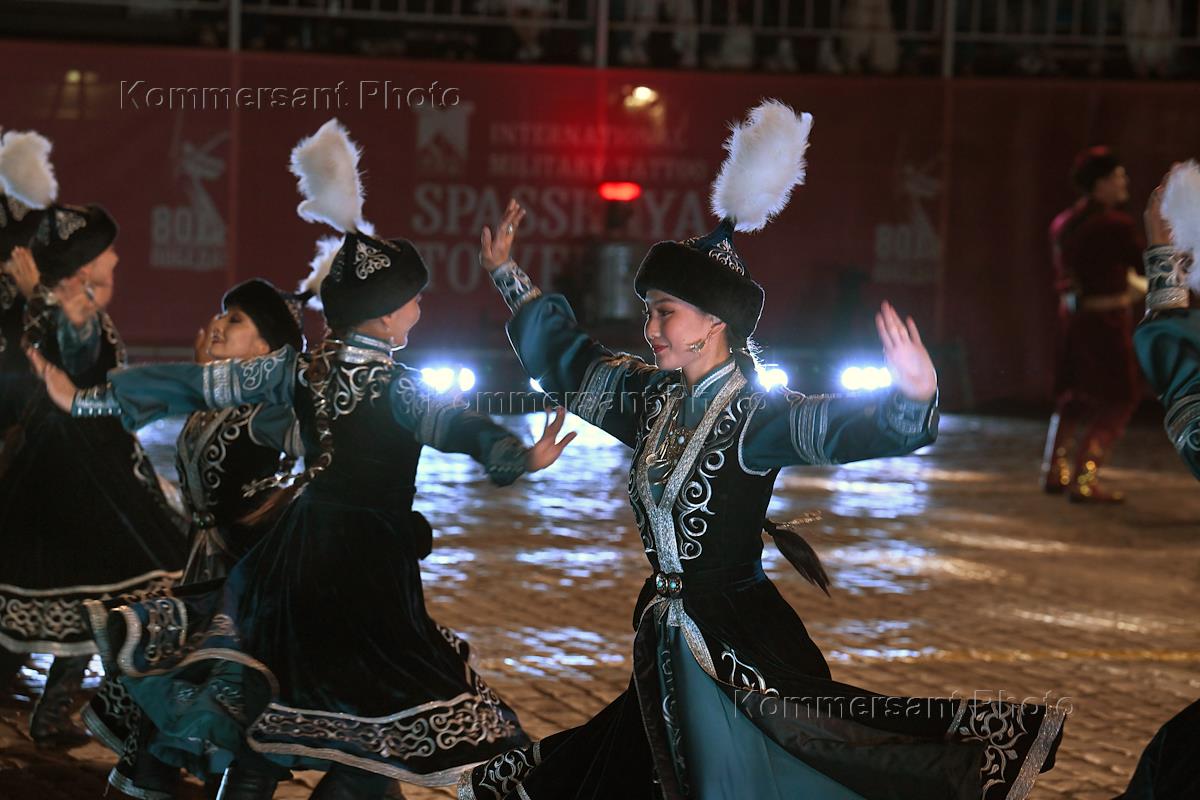 XVII Международный военно-музыкальный фестиваль "Спасская башня" на Красной площади. Церемония закрытия. Академический ансамбль песни и пляски Вооруженных сил Монголии выступает на церемонии.